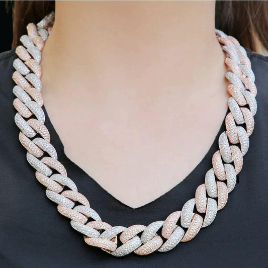 These chains are typically made from gold, silver, or stainless steel, and adorned with diamonds or high-quality cubic zirconia stones.