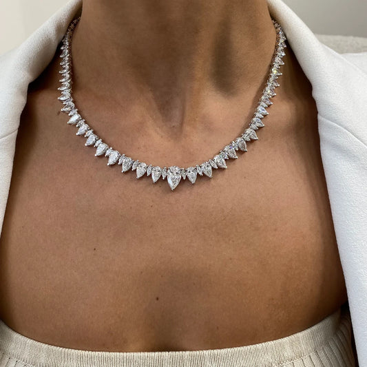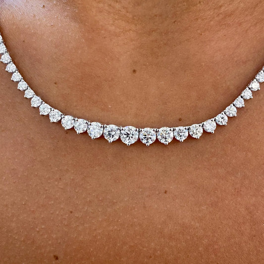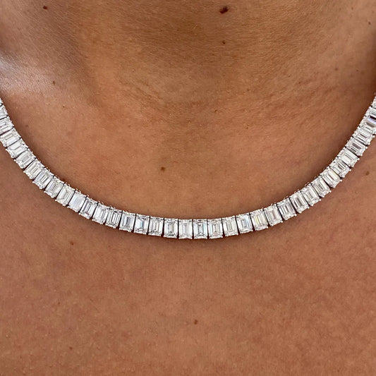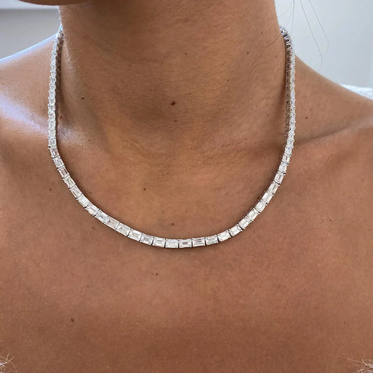A lab-grown diamond necklace features diamonds created in a controlled laboratory setting that possess the same chemical, physical, and optical properties as mined diamonds. These necklaces are a sustainable and ethical choice for fine jewelry enthusiasts.