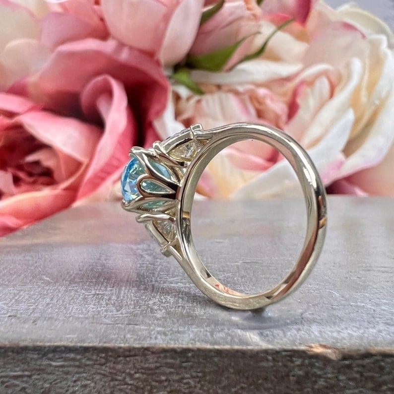 14K Solid Gold Oval Cut Aquamarine Engagement March Birthstone Ring