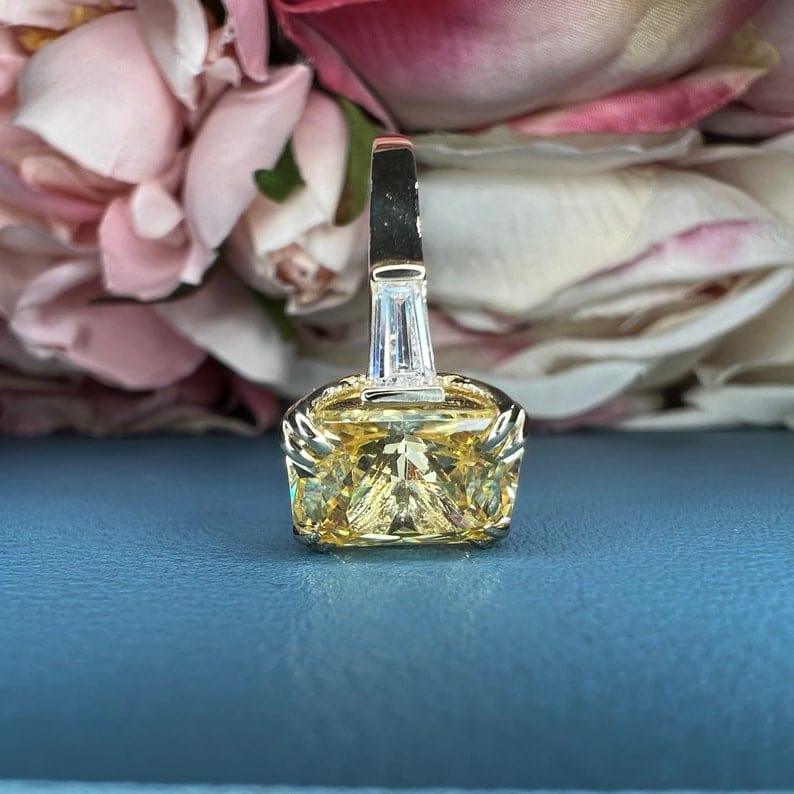 14K Solid Gold Radiant Canary Yellow Topaz Gemstone Ring