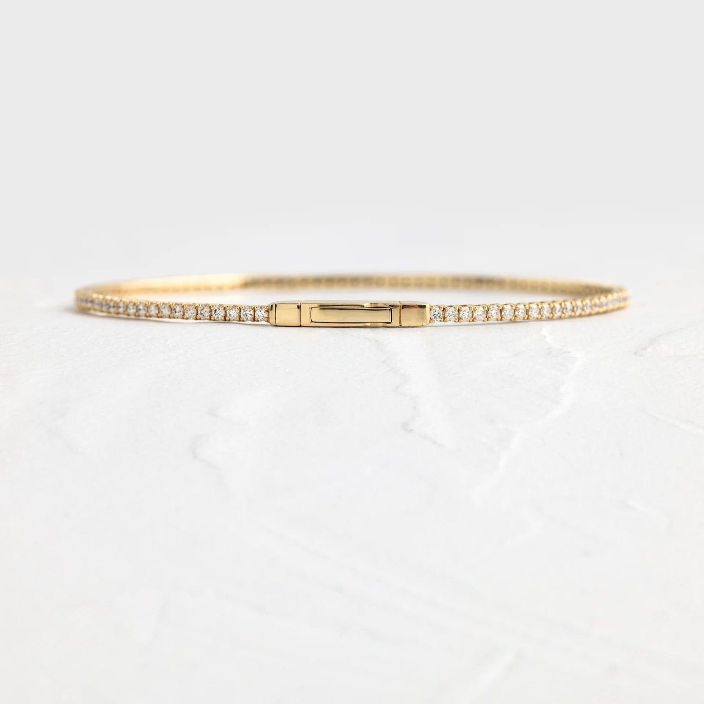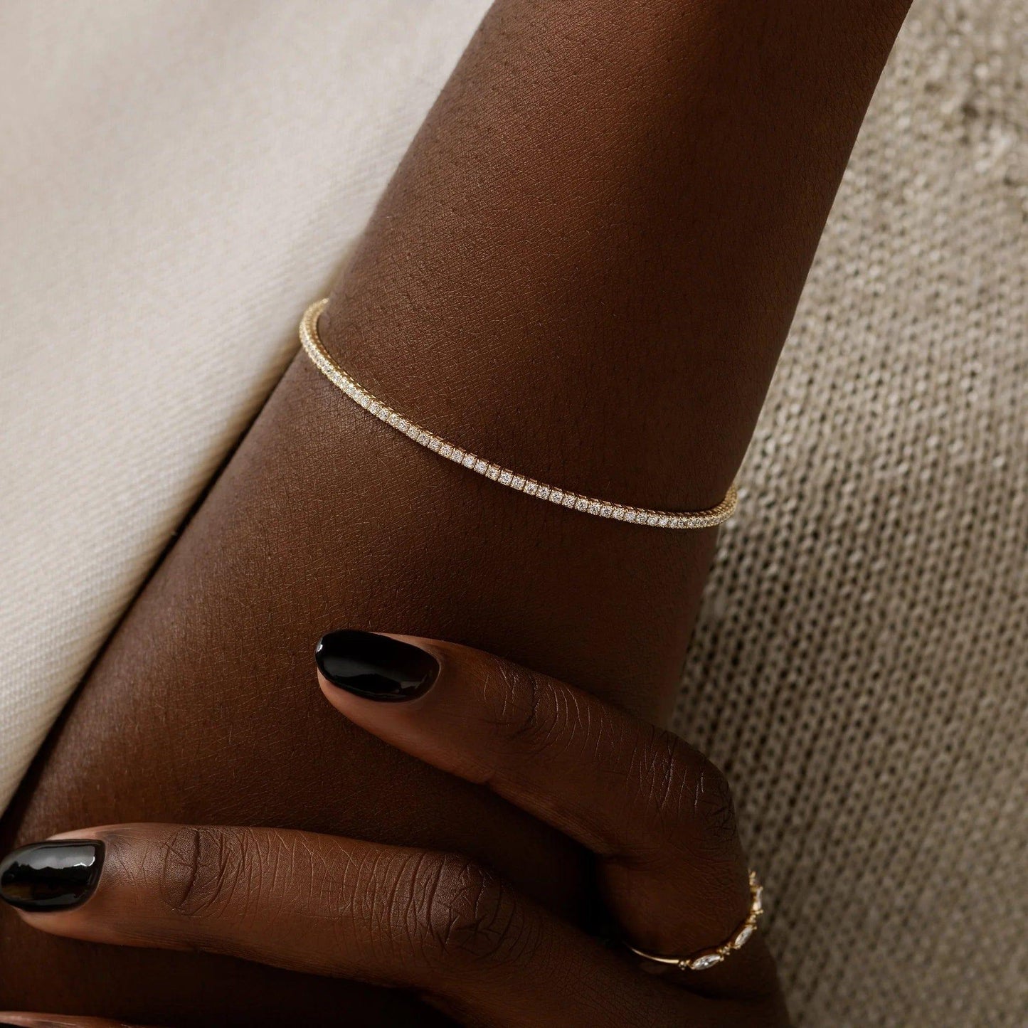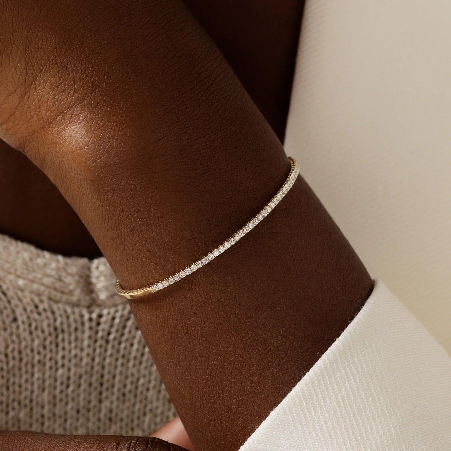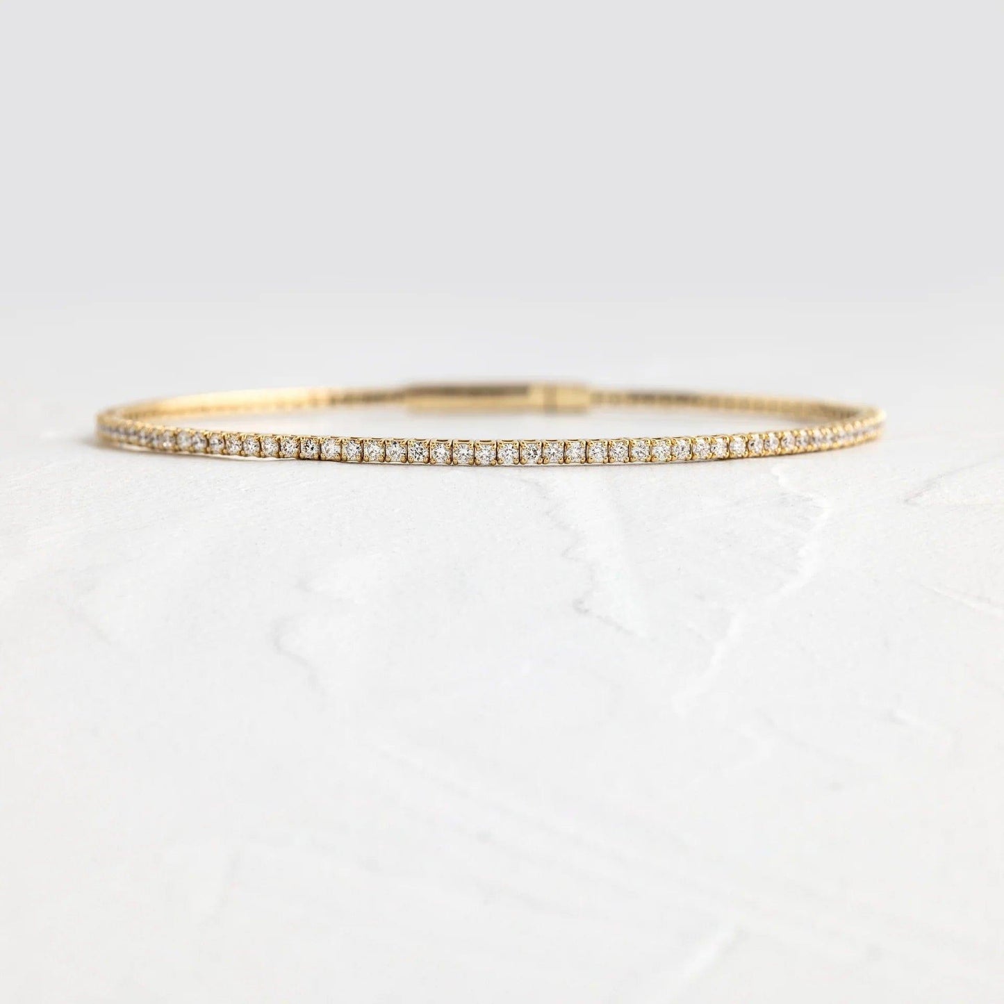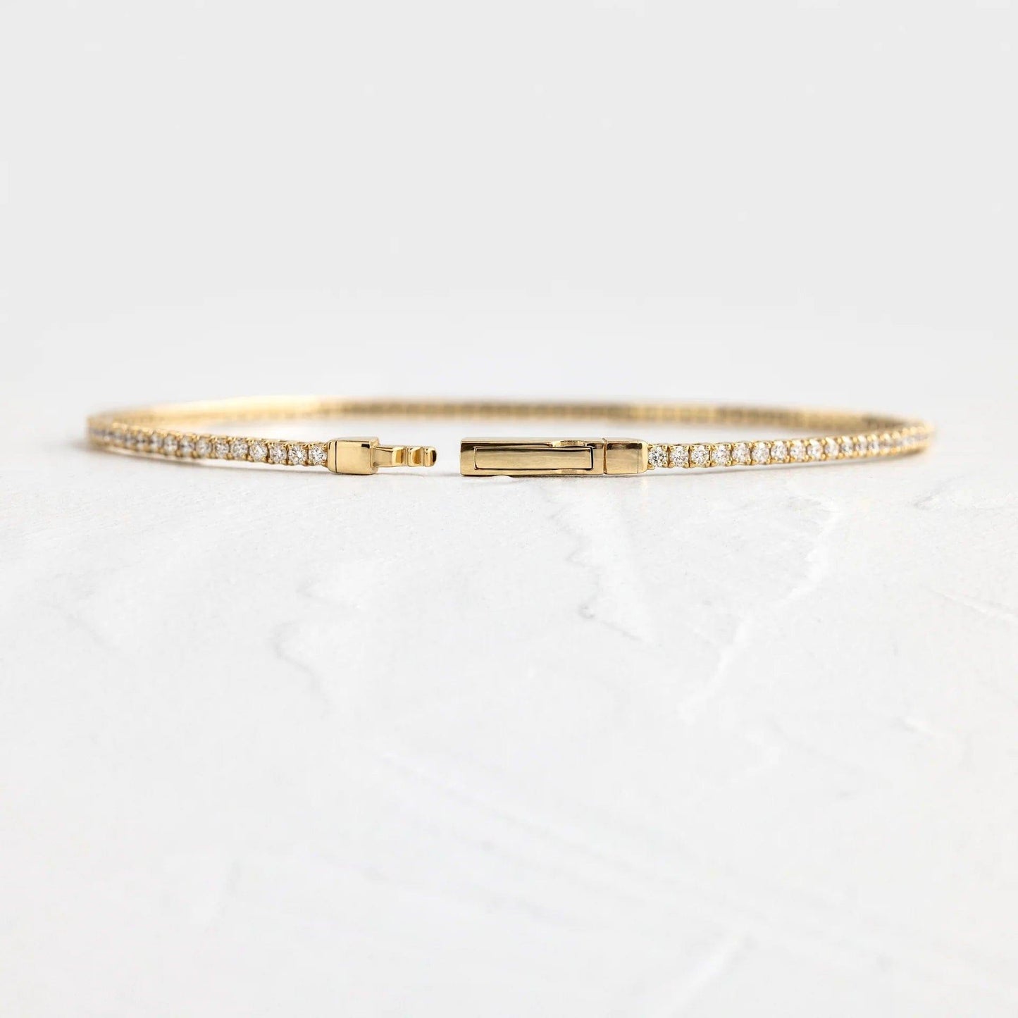 14k Solid Gold Round Shaped Lab Grown Tennis Wisp Bracelet