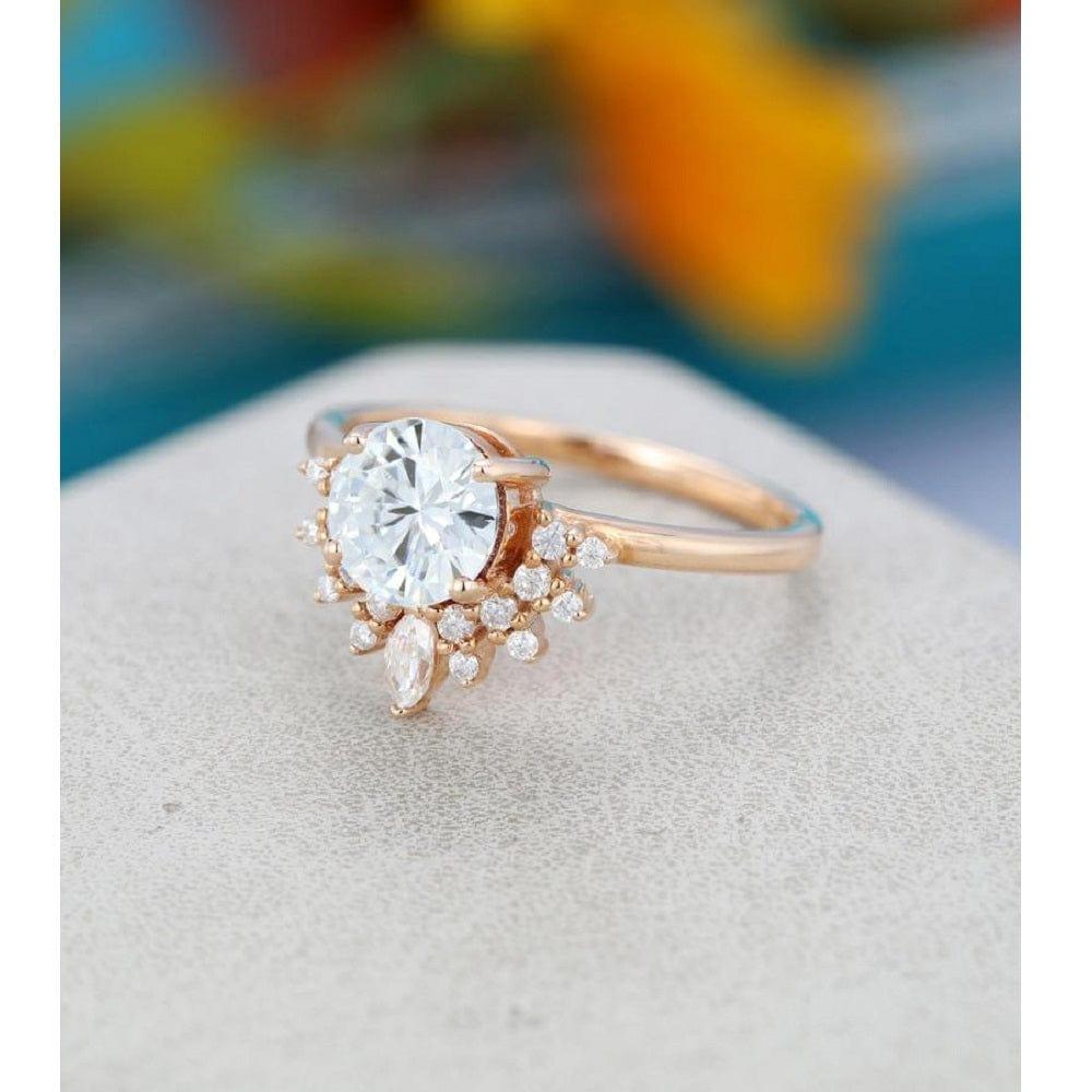 1CT Round Cut Gold Half Halo Crown Moissanite Engagement Ring