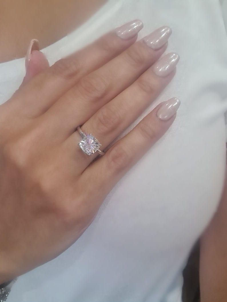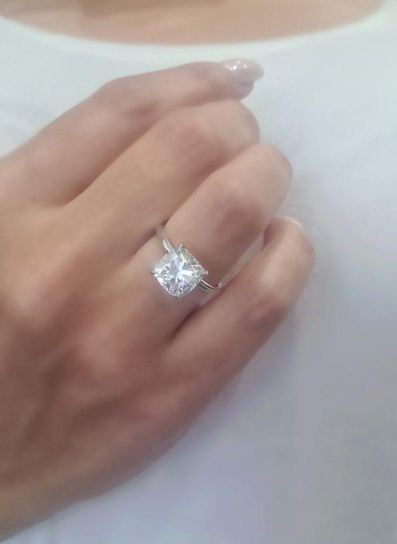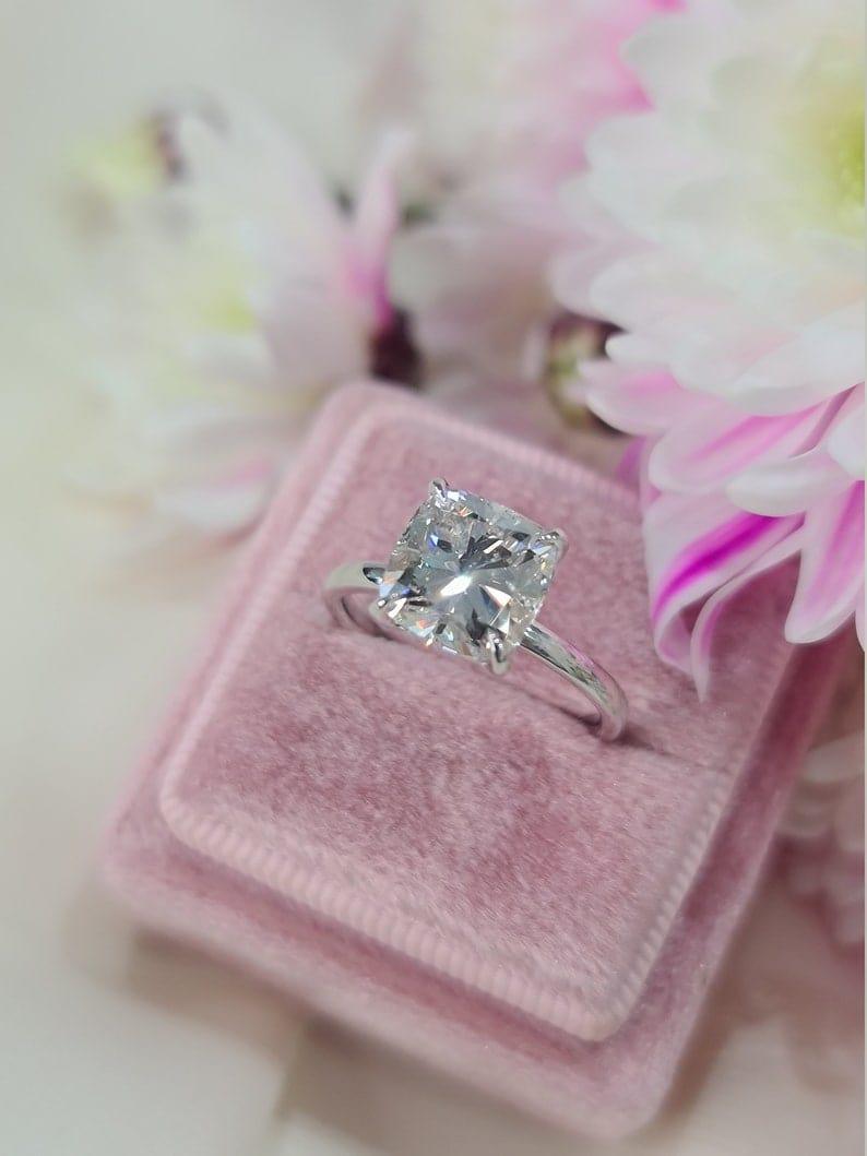 2CT Cushion Cut Certified Lab-Grown Diamond Solitaire Engagement Ring