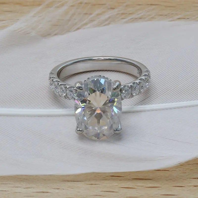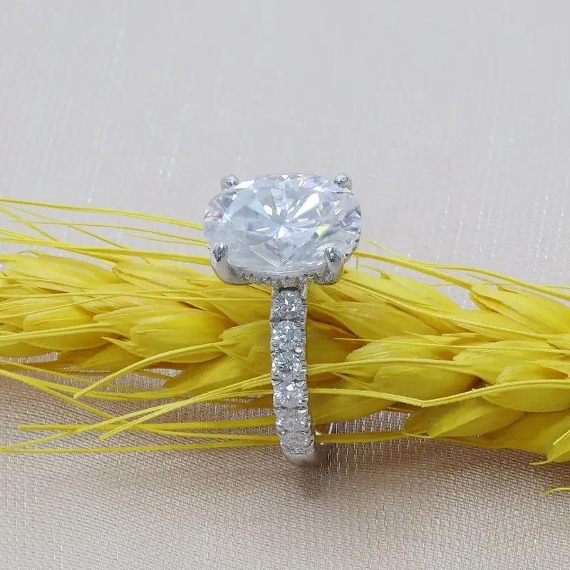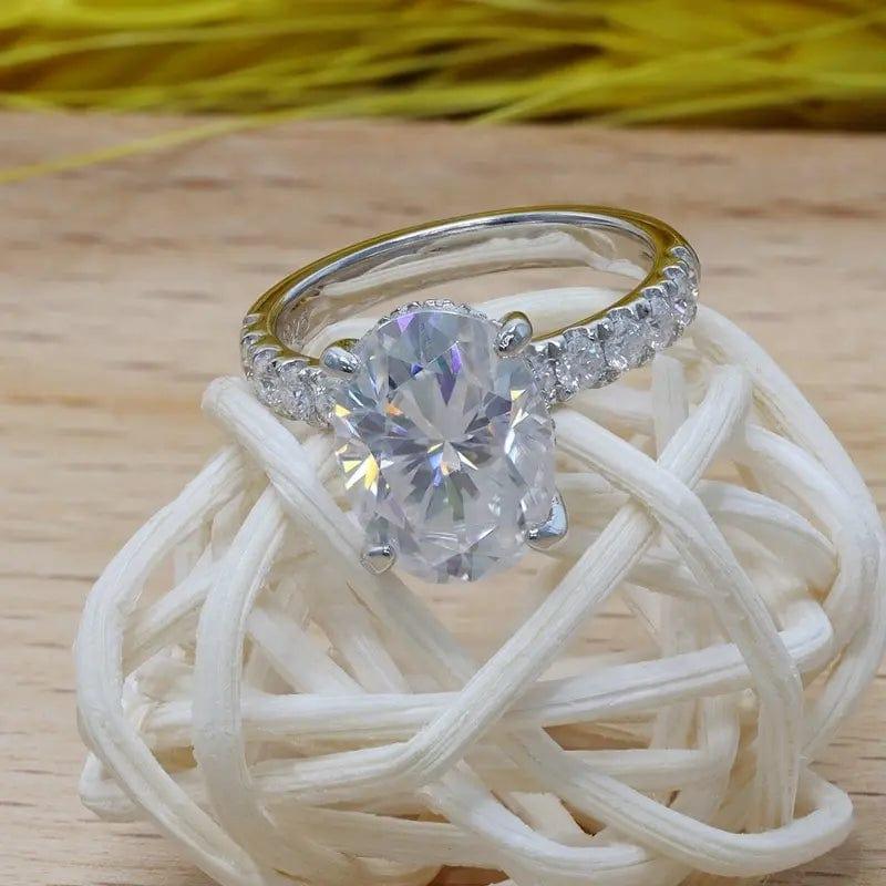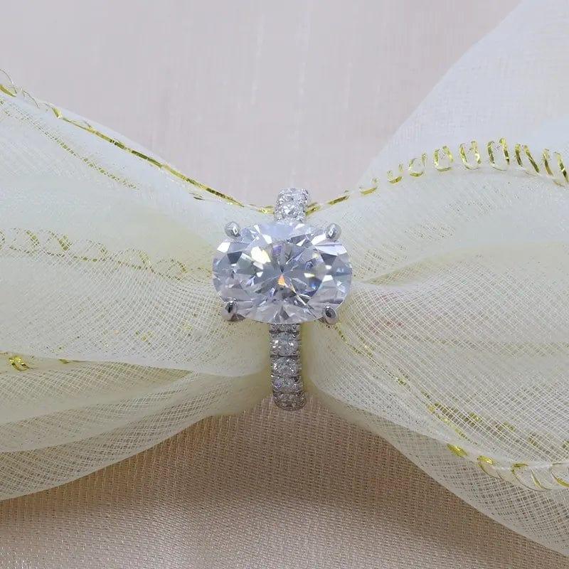 2Ct Oval Cut Lab Grown-CVD Solitaire Under Halo Engagement Ring