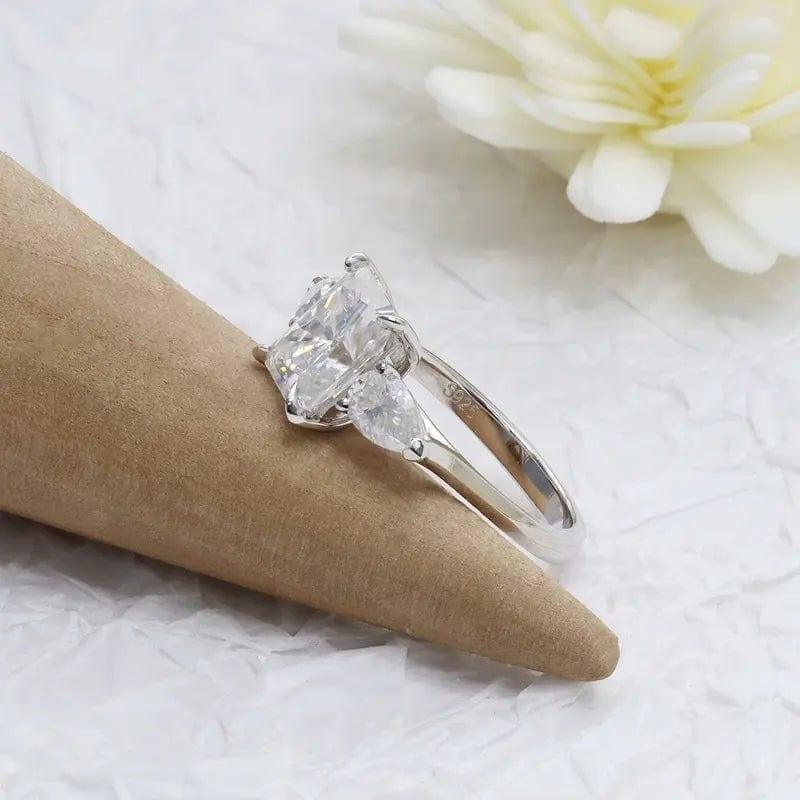 2Ct Radiant Cut Lab Grown Diamond Three Stone Engagement Ring