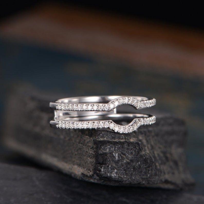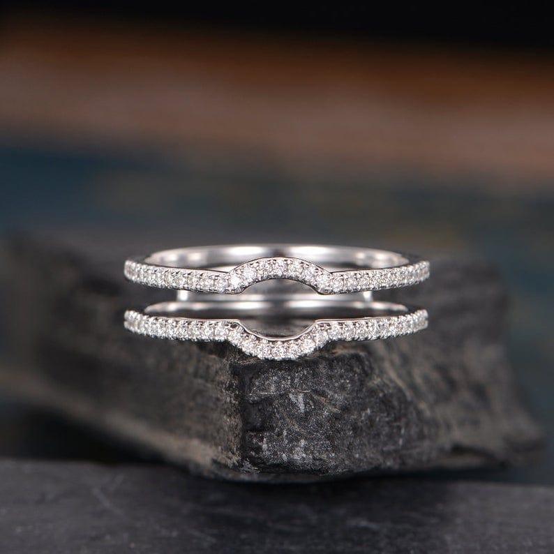 White Gold Cage Half Eternity Stacking Matching Women Bridal Moissanite Wedding Band