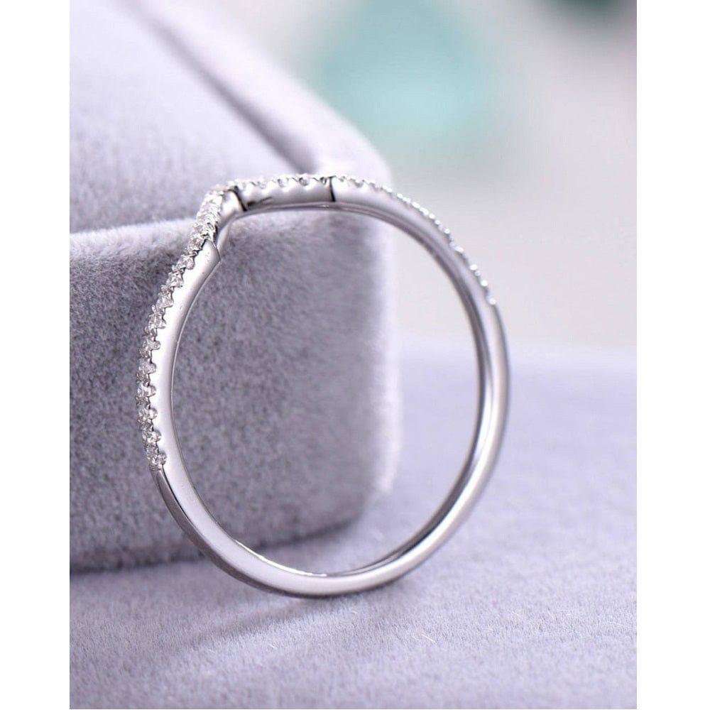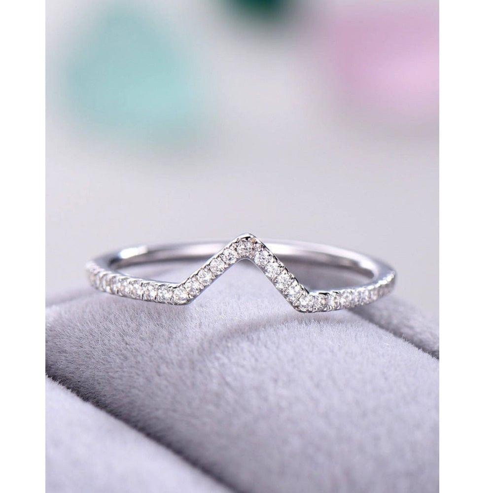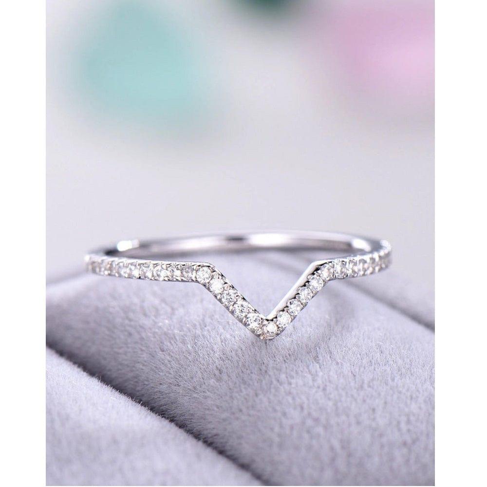 Delicate 14K White Gold V Shaped Chevron Moissanite Wedding Band For Women