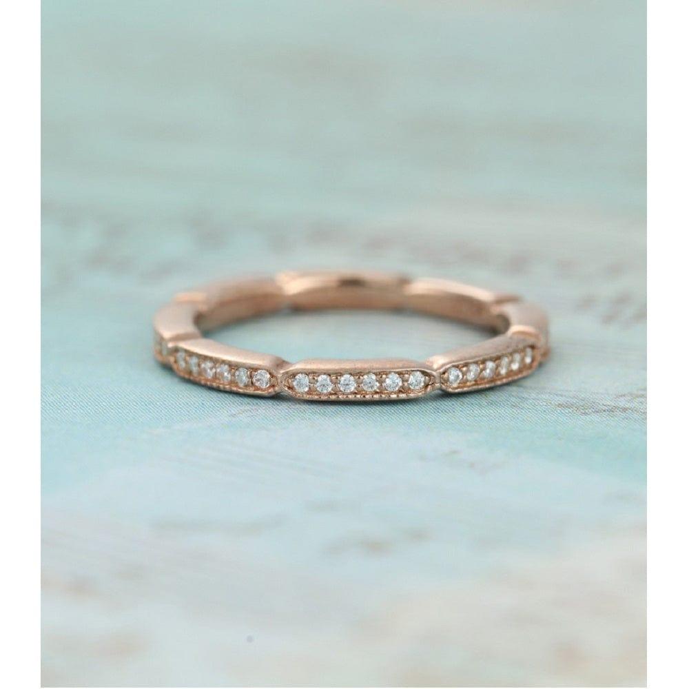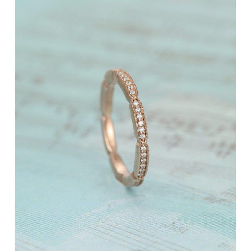 Rose Gold Vintage Stacking Matching Ring full Eternity Moissanite Promise Band
