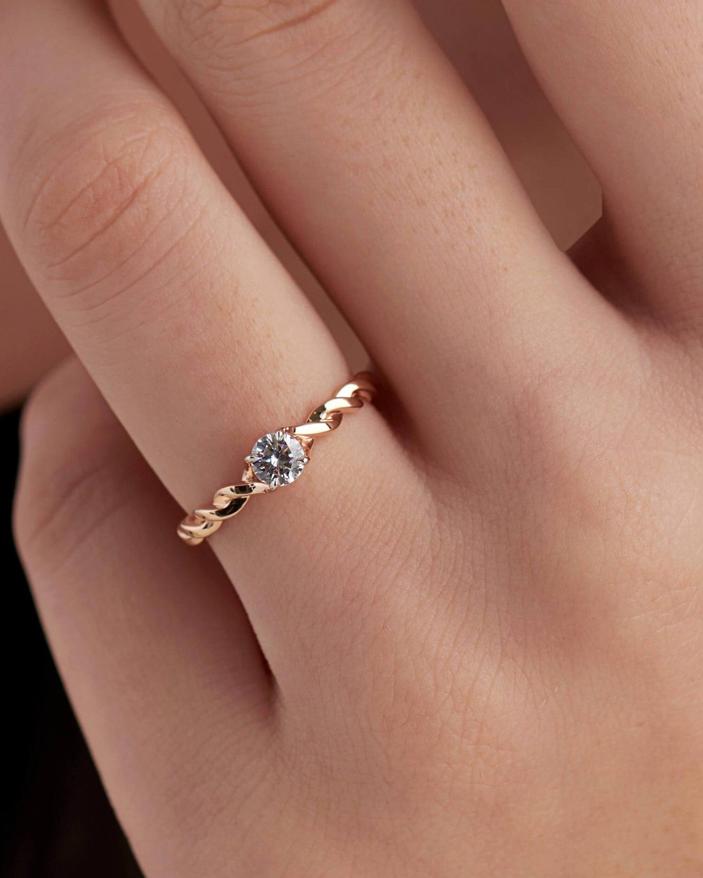 Round Cut Lab Grown Diamond Twist Shank Ring