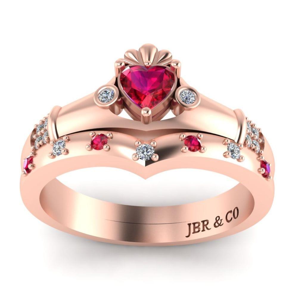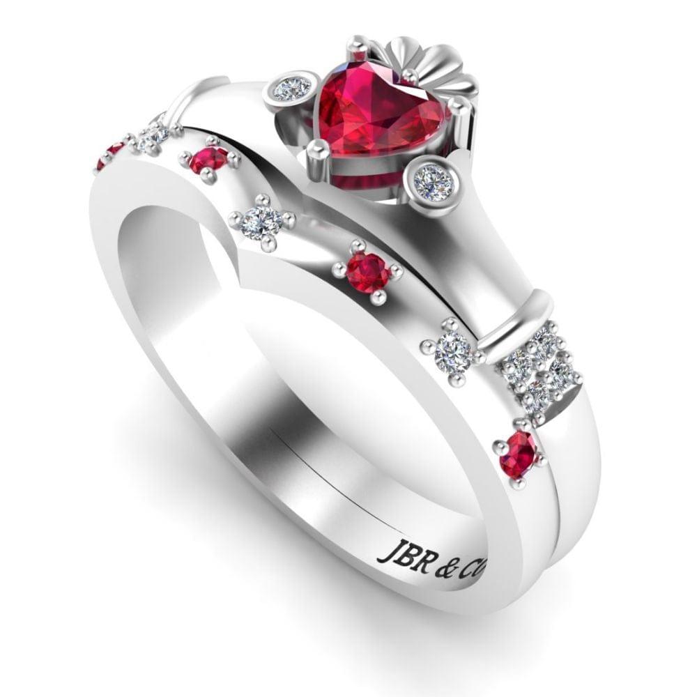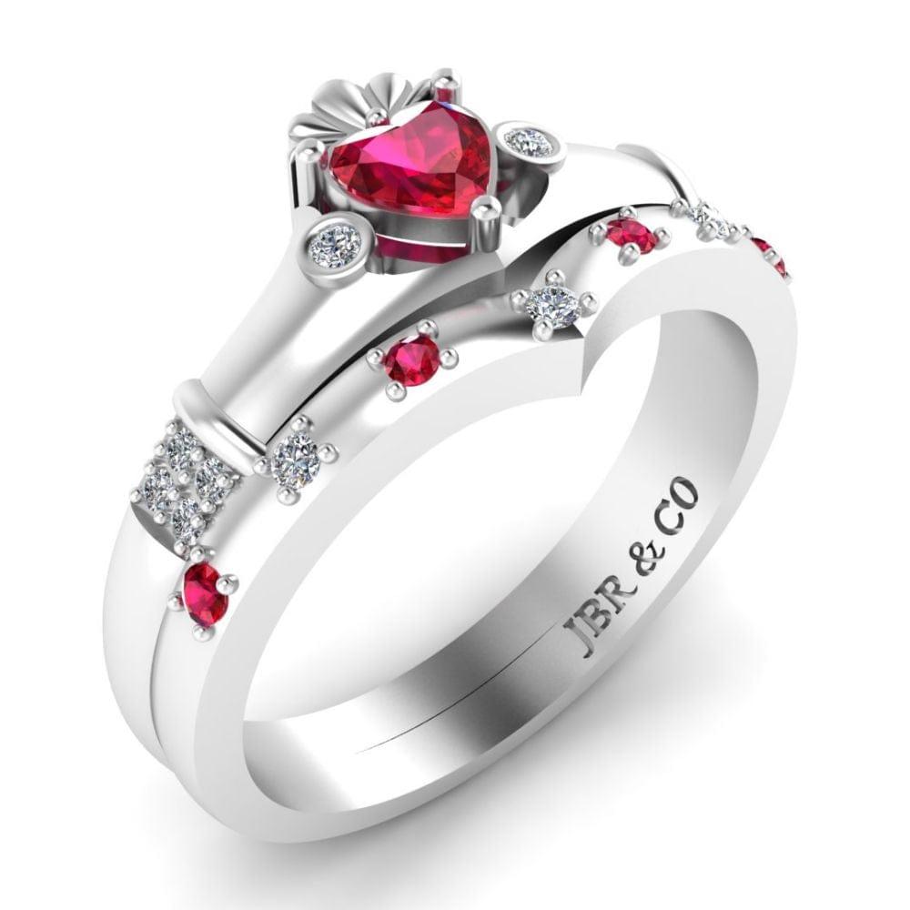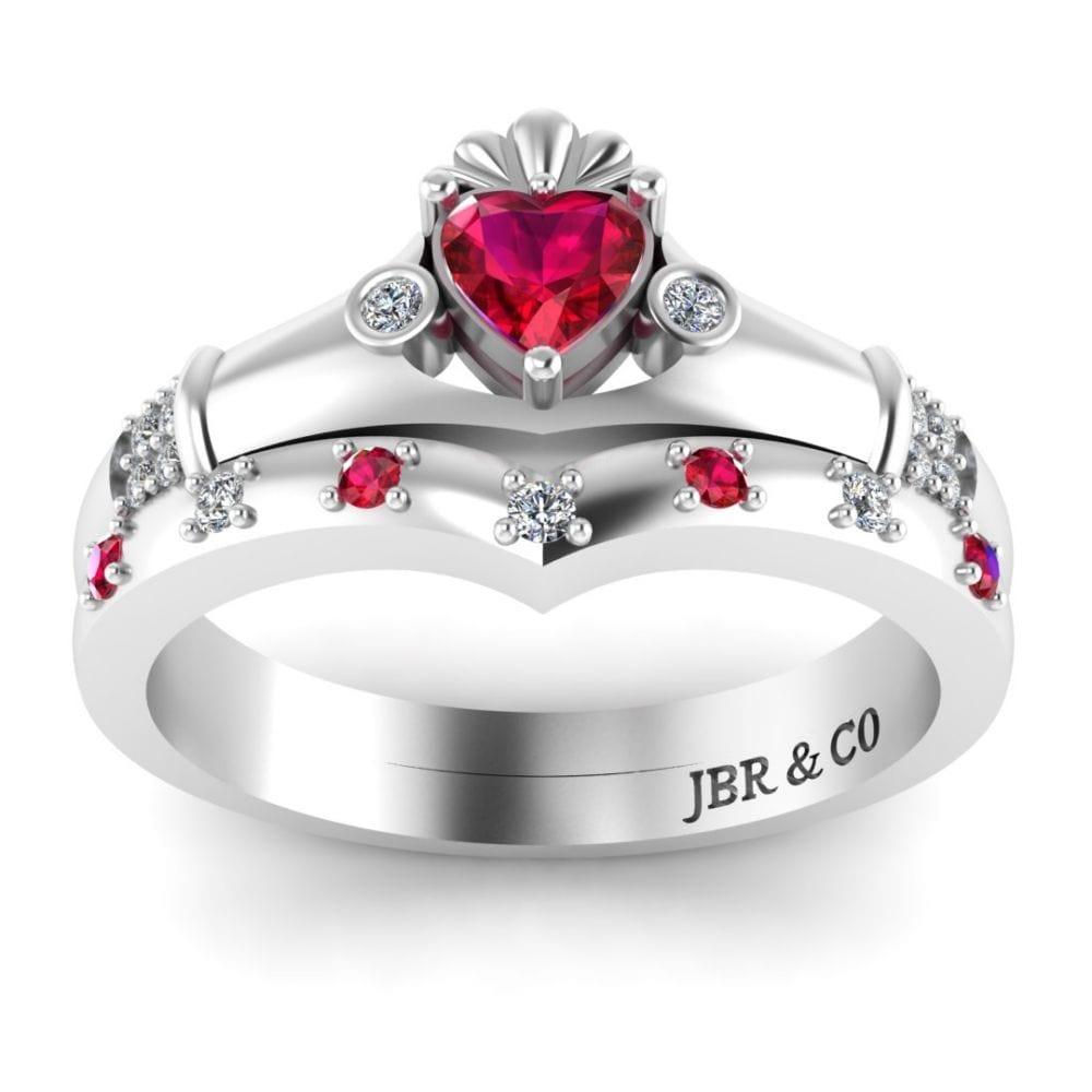 Celebrating love, beauty and Irish culture, this Claddagh ring will capture your heart at first sight. Crafted in sleek sterling silver, the ring features Simulated heart Cut Ruby as a center stone with sparkling Diamond Simulant color. The traditional Claddagh ring is a meaningful token of loyalty, friendship and love. The hands represent friendship, the heart represents love and the crown represents loyalty.