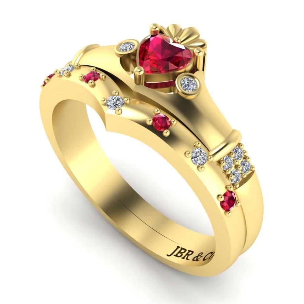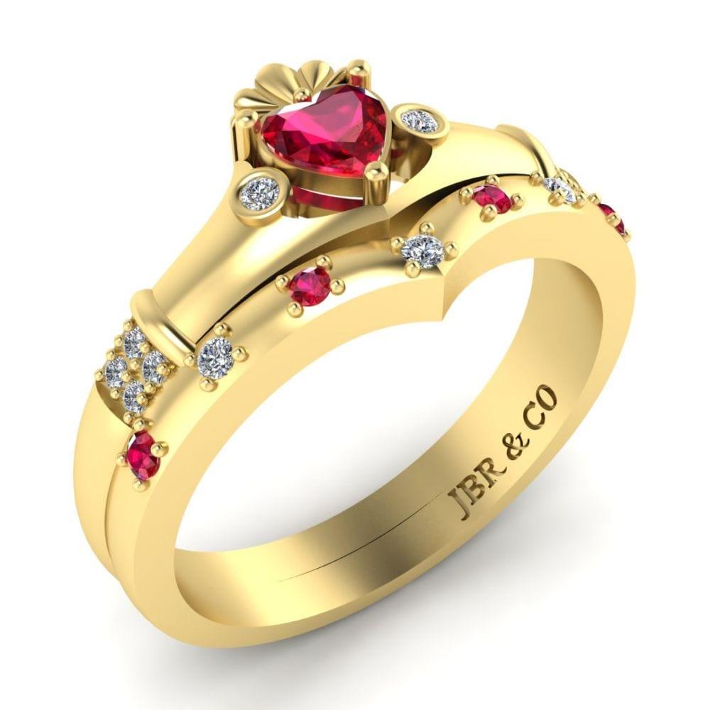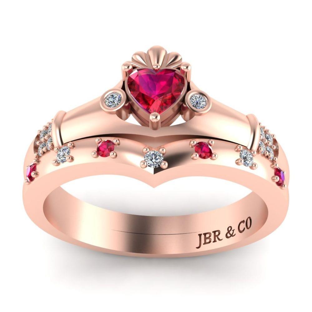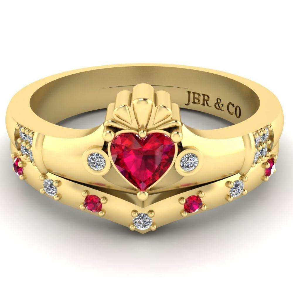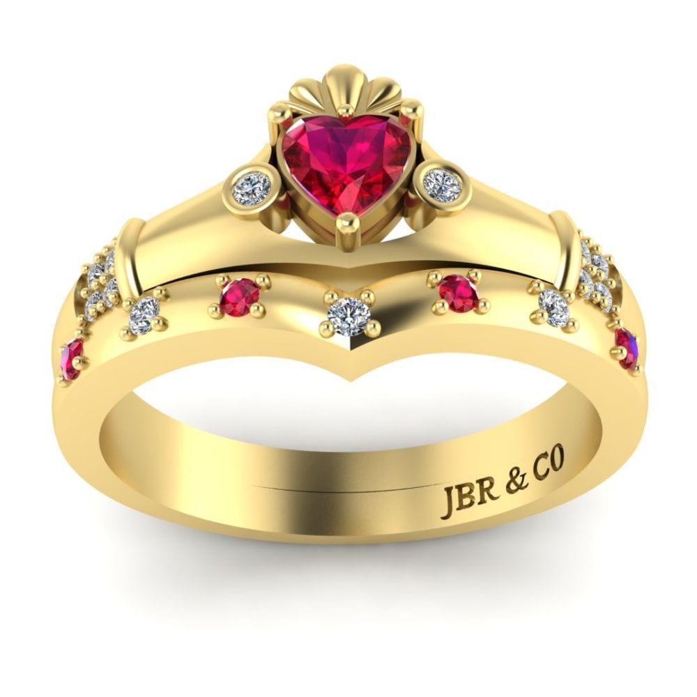 Celebrating love, beauty and Irish culture, this Claddagh ring will capture your heart at first sight. Crafted in sleek sterling silver, the ring features Simulated heart Cut Ruby as a center stone with sparkling Diamond Simulant color. The traditional Claddagh ring is a meaningful token of loyalty, friendship and love. The hands represent friendship, the heart represents love and the crown represents loyalty.