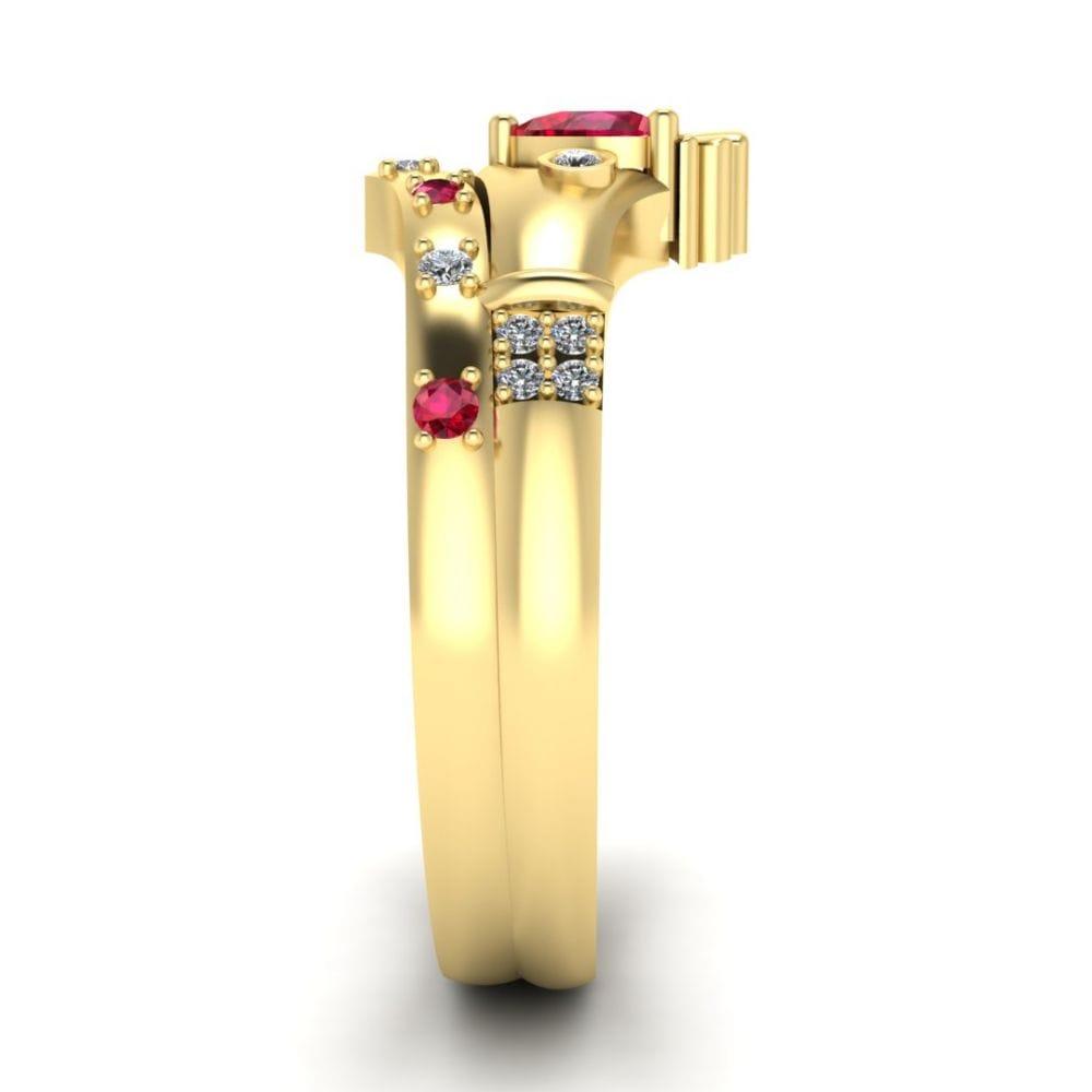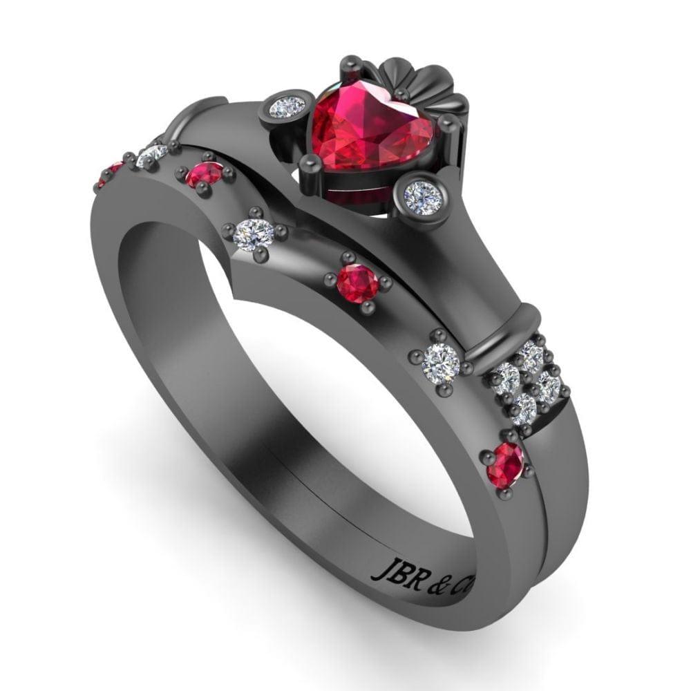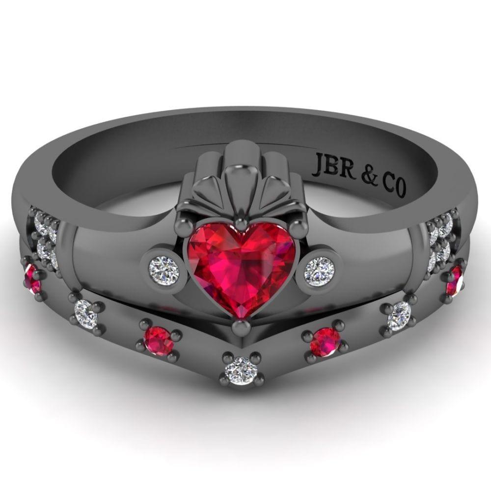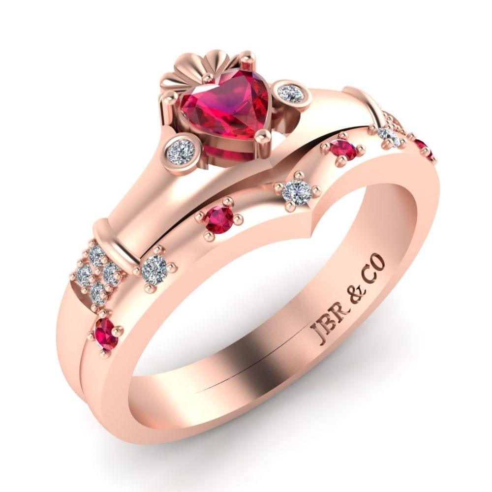 Celebrating love, beauty and Irish culture, this Claddagh ring will capture your heart at first sight. Crafted in sleek sterling silver, the ring features Simulated heart Cut Ruby as a center stone with sparkling Diamond Simulant color. The traditional Claddagh ring is a meaningful token of loyalty, friendship and love. The hands represent friendship, the heart represents love and the crown represents loyalty.
