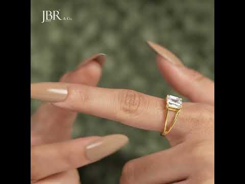 Split Band Emerald Cut Moissanite Diamond Solitaire Ring