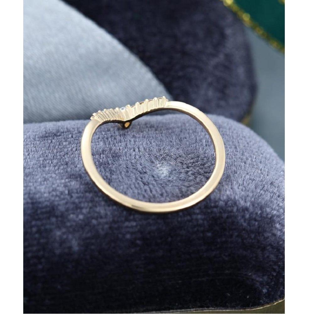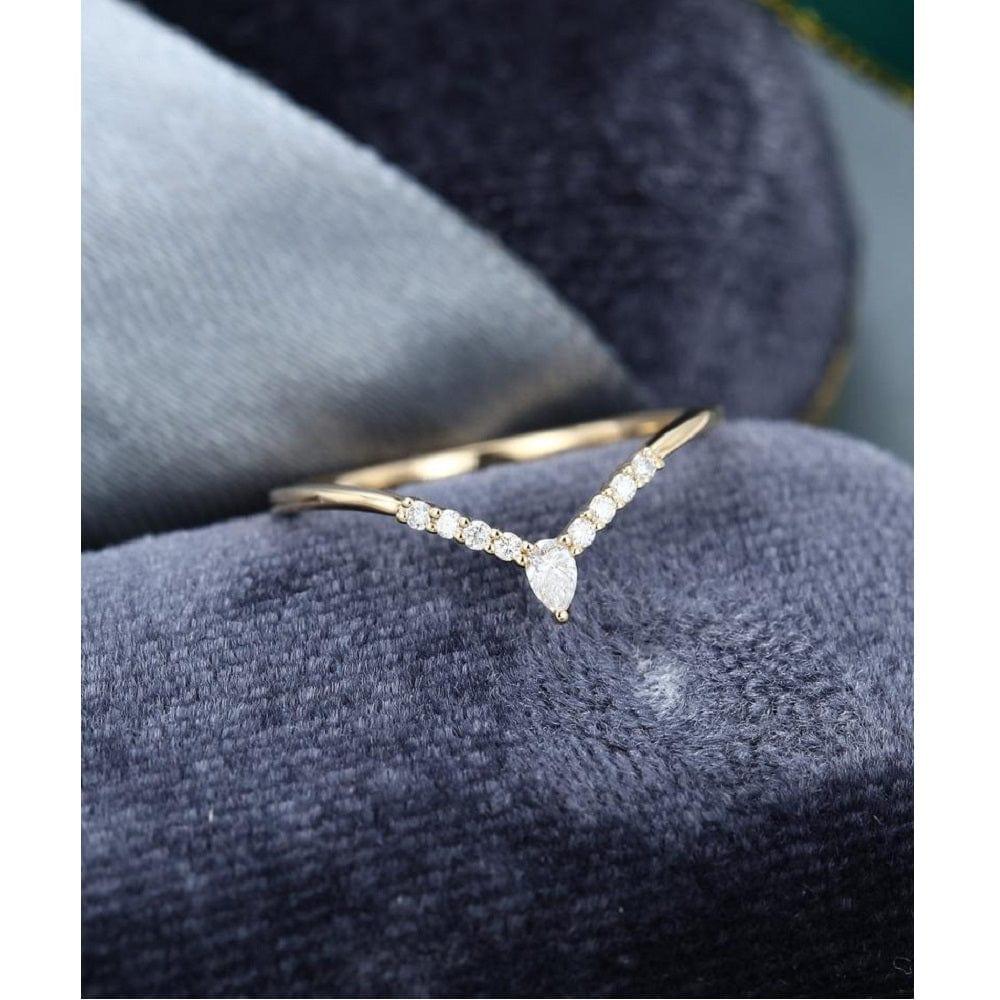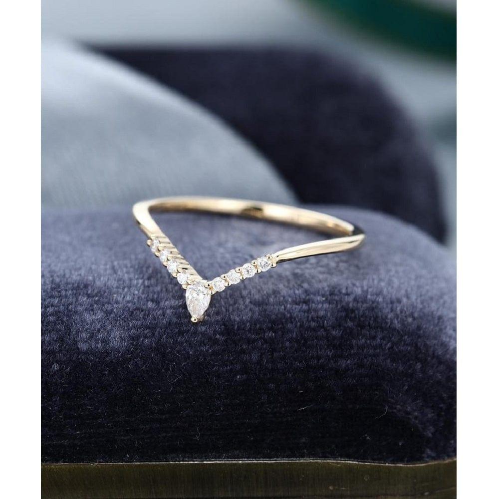 Unique Curved Yellow Gold Pear Stacking Matching Bridal Moissanite wedding Band