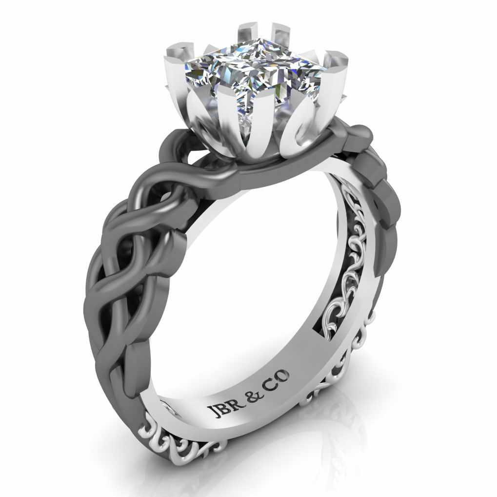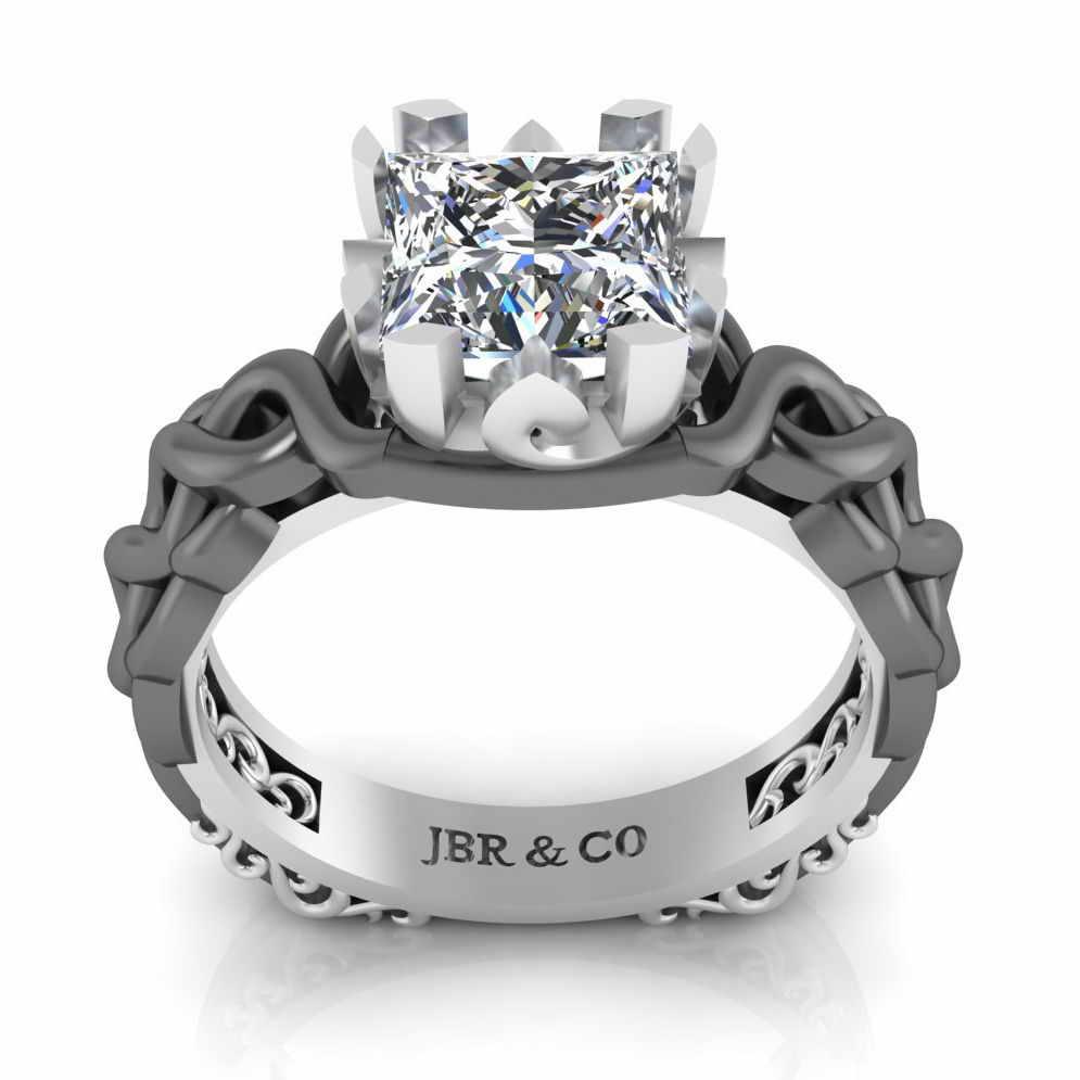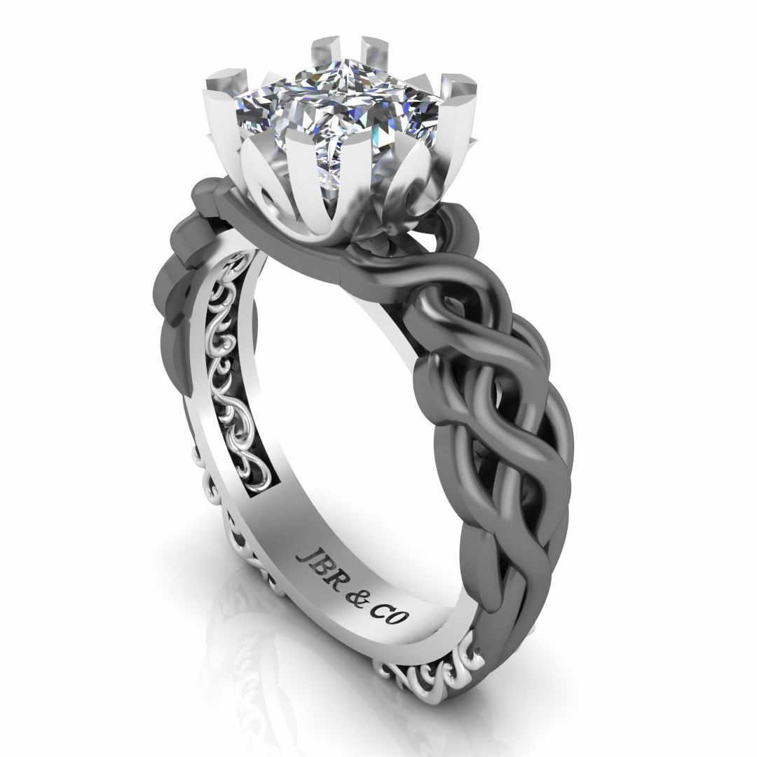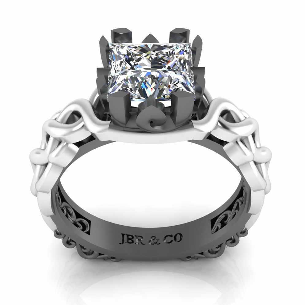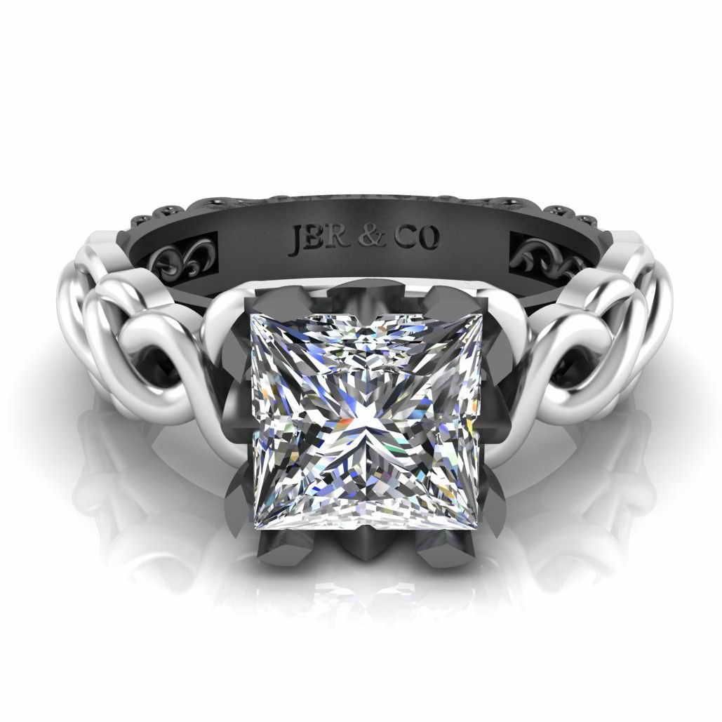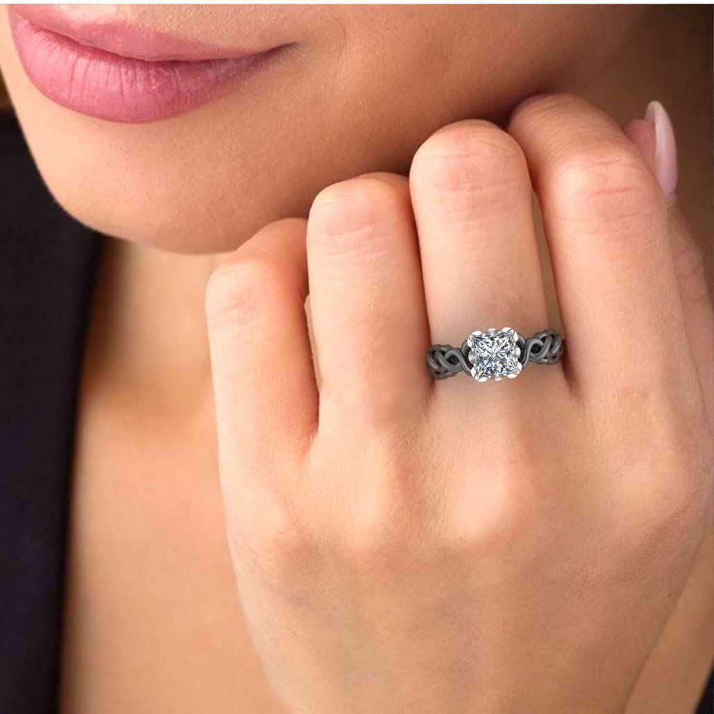 This unique solitaire Simulants diamond engagement ring will capture her heart from the moment she beholds it. Featuring a band adorned with a swirl accents, it holds a Simulants diamond center stone to finish off the design. This Sterling Silver ring dazzles under the light and makes an extra special statement based on its style and originality. You found your princess, now guarantee that she'll say "Yes" to your proposal with this unique engagement ring.