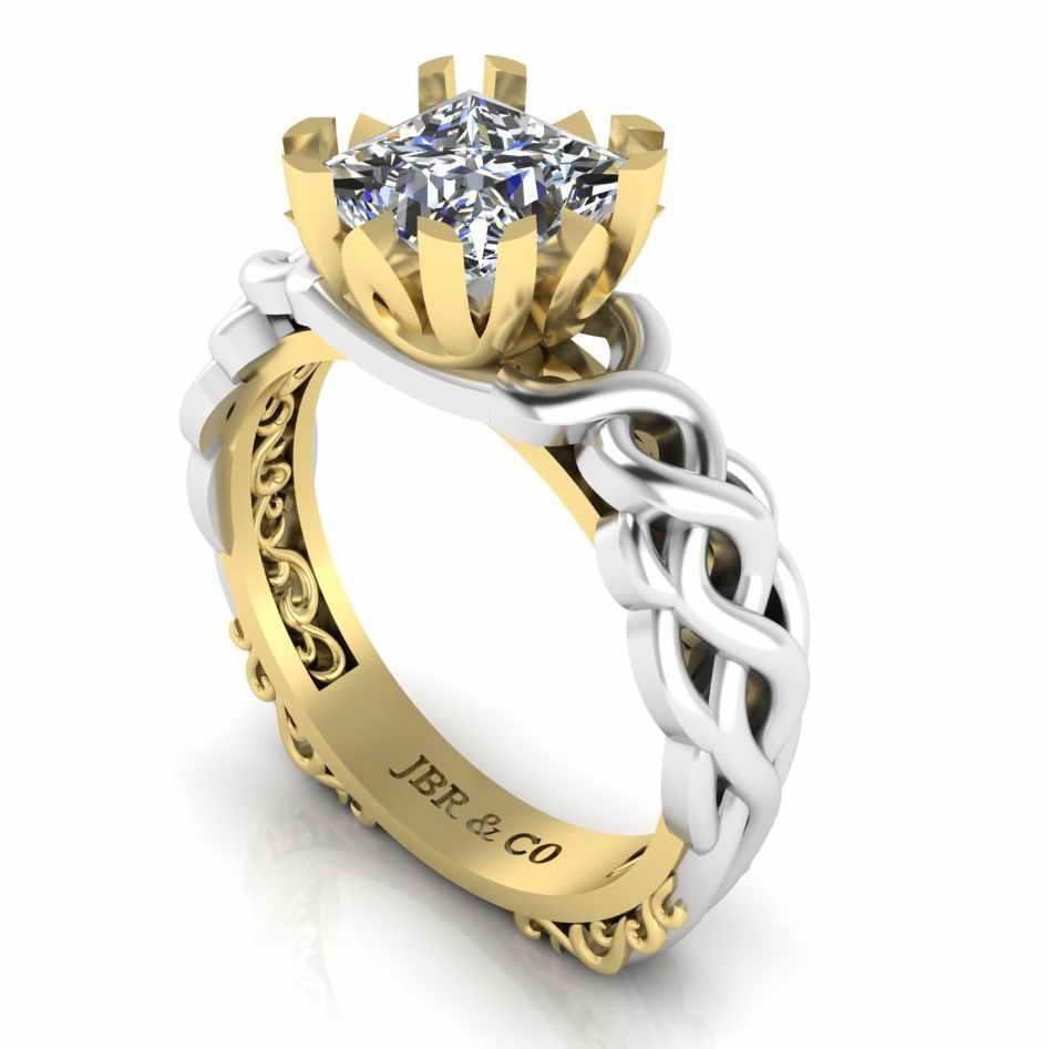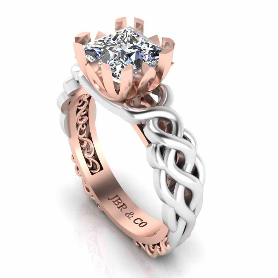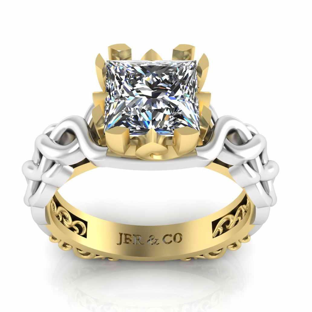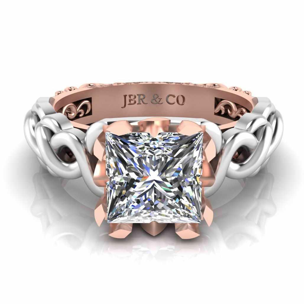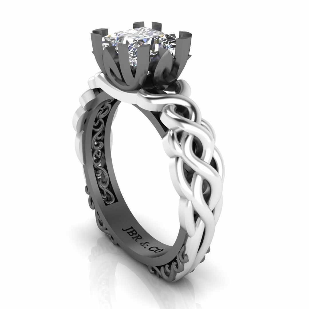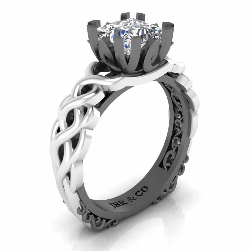 This unique solitaire Simulants diamond engagement ring will capture her heart from the moment she beholds it. Featuring a band adorned with a swirl accents, it holds a Simulants diamond center stone to finish off the design. This Sterling Silver ring dazzles under the light and makes an extra special statement based on its style and originality. You found your princess, now guarantee that she'll say "Yes" to your proposal with this unique engagement ring.